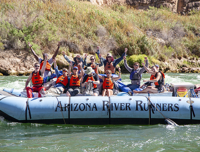 The majority of Arizona River Runners’s trips are on motorized rafts. Why is that? Well, oar trips are about 2 weeks long OR require a strenuous hike into or out of the Grand Canyon. By traveling twice the speed of the current (about 8 mph instead of 4 mph), you are able to enjoy the thrill of the rapids, explore side canyons and waterfalls, and experience highlights of the Grand Canyon in about a week without hiking into or out of the canyon.
