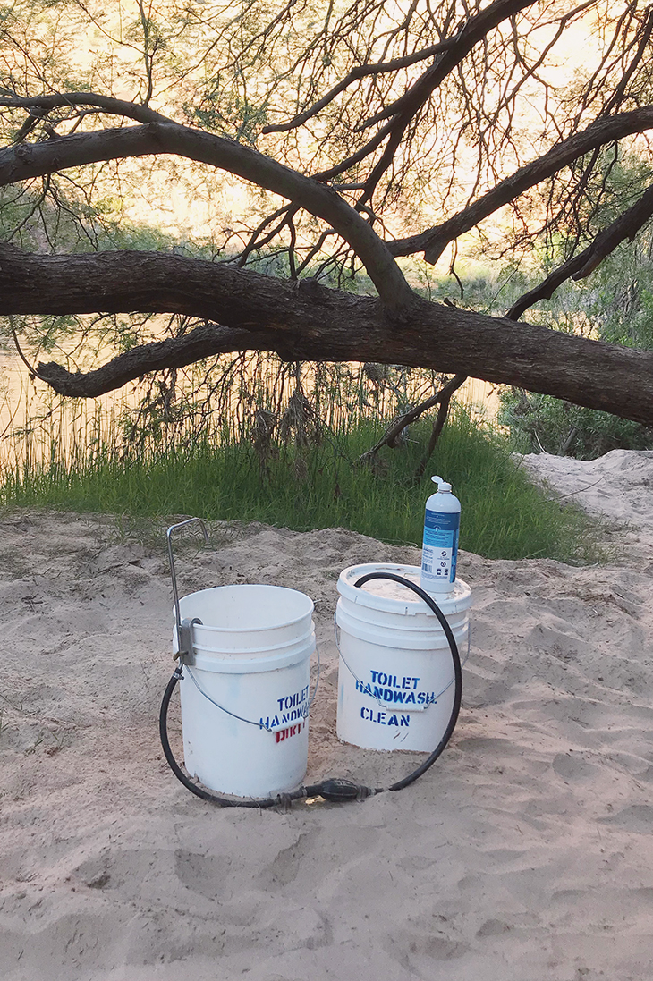 Because we’re like a big, close family throughout the river trip, keeping clean is an important factor in staying healthy. We’ll set up a hand wash system that pumps water from one bucket to the next so you can wash your hands before eating and after using the toilet.