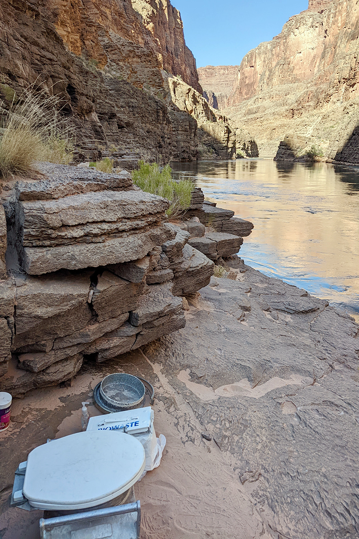 At a Glance: Going to the bathroom on an Arizona River Runners Grand Canyon river trip is a little different than going at home. It requires all liquid waste to go directly into the Colorado River while solid waste is managed via a private, portable “groover” toilet system at camp.