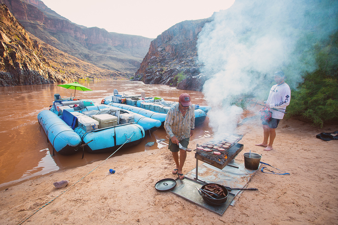 River guide cooking dinner on the grill