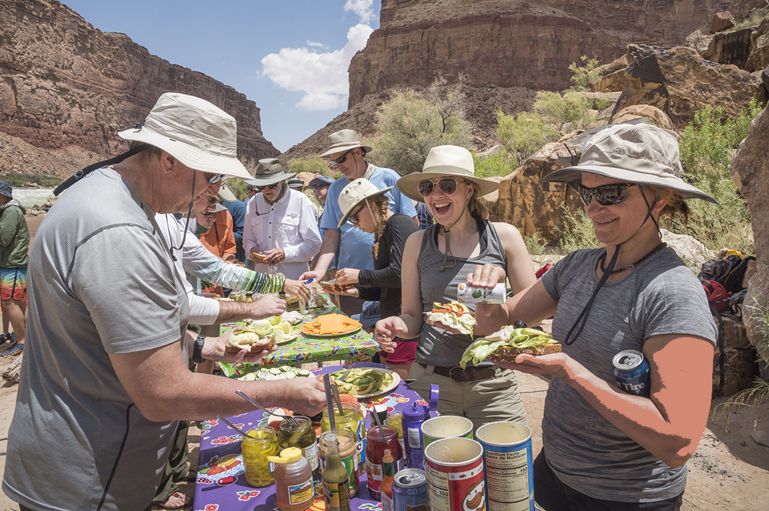 Take a break from running rapids and make a sandwich or two. We set out a variety of fresh vegetables, as well as quality deli meat and cheese. Peanut butter and jelly are also available and there will be sweet and salty snacks on the side.